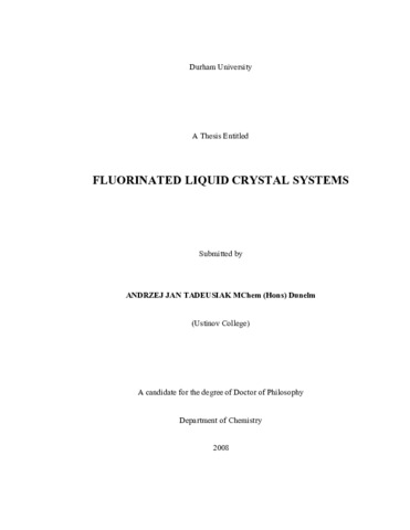 Chapter 1. An introduction to the principles of two different types of LC cell and the design of new fluorinated materials for modem LCD applications is presented here. Discussion includes reasons why fluorinated molecules have become the compounds of choice for display devices, and a history of organo-fluorine chemistry from early discovery of the element, through nucleophilic substitution and debromolithiation reactions of bromoperfluorobenzenes, to very recent developments in synthesis.Chapter 2. This chapter presents a brief overview of some of our early ideas as to how new fluorinated LCs might be made synthetically, exploiting advances in the field of organo-fluorine chemistry, utilising perfluorobenzene and bromoperfluorobenzene "scaffolds."Chapter 3. A discussion of how new "model" fluorinated LC materials were obtained via nucleophilic aromatic substitution in bromoperfluorobenzenes is presented in this chapter. The flexibility of the methodology is demonstrated through use of different substrate isomers to afford different aromatic fluorination patterns, and of different nucleophiles to create "families" of homologous materials.Chapter 4. The versatility of bromoperfluorobenzenes as substrates is exemplified in this chapter, whereby a number of isomers of these "scaffold" molecules were built upon via debromolithiation followed by reaction with electrophiles. This methodology was also applied to functionalised bromofluorobenzenes from chapter 3, and a small library of related compounds was synthesised as in the previous chapter.Chapter 5. Recent advances in metal C-F bond activation have assisted with ourdevelopment of a new synthetic route to fluorobiphenyl moieties, based on Suzuki- Miyaura chemistry and presented in this chapter.Chapter 6. Many of the novel fluorinated materials synthesised in chapters 3 to 4 were sent to SONY MSL, Stuttgart, and their properties determined by tests including electro- optical, DSC, and VHR analysis. The results are discussed and compared, and their potential for application in current LC display devices assessed.