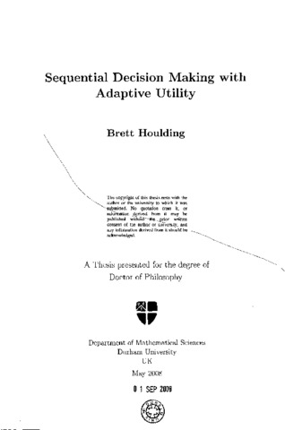 Decision making with adaptive utility provides a generalisation to classical Bayesian decision theory, allowing the creation of a normative theory for decision selection when preferences are initially uncertain. The theory of adaptive utility was introduced by Cyert & DeGroot [27], but had since received little attention or development. In particular, foundational issues had not been explored and no consideration had been given to the generalisation of traditional utility concepts such as value of information or risk aversion. This thesis addresses such issues. An in-depth review of the decision theory literature is given, detailing differences in assumptions between various proposed normative theories and their possible generalisations. Motivation is provided for generalising expected utility theory to permit uncertain preferences, and it is argued that in such a situation, under the acceptance of traditional utility axioms, the decision maker should seek to select decisions so asto maximise expected adaptive utility . The possible applications of the theory forsequential decision making are illustrated by some small-scale examples, including examples of relevance within reliability theory.