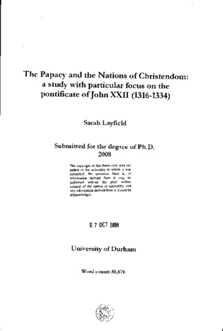 The Papacy and the Nations of Christendom: a study with particular focus on the pontificate of John XXII (1316-1334)