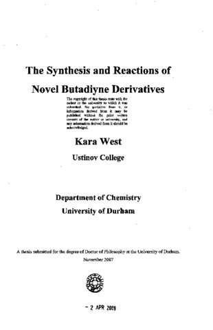 The synthesis, isolation and characterisation of aryl and heteroarylbutadiynes is herein reported. X-ray structural analysis for terminal butadiynes 72,118, 143, 157, 162 and 172 has been obtained. The packing diagrams indicate, in most cases, a hydrogen bonding interaction between the terminal acetylenie proton and the appropriate atom in the ring. An important feature of our synthetic methodology is the use of the 2-hydroxy-2-propyl protecting group, which facilitates purification from protected species, due to a large difference in polarity. The synthesis of mono- and di-deprotected bis-butadiynes is also reported; indeed X- ray structural analysis of di-deprotected pyridyl bis-butadiyne 234 has been obtained, as shown in the figure below The reactions of aryl and heteorarylbutadiynes and bis-butadiynes have also been investigated, leading to the synthesis of molecular-wire precursors 262 and 264.