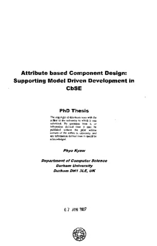 In analysing the evolution of Software Engineering, the scale of the components has increased, the requirements for different domains become complex and a variety of different component frameworks and their associated models have emerged. Many modern component frameworks provide enterprise level facilities and services, such as instance management, and component container support, that allow developers to apply if needed to manage scale and complexity. Although the services provided by these frameworks are common, they have different models and implementation. Accordingly, the main problem is, when developing a component based application using a component framework, the design of the components becomes tightly integrated with the framework implementation and the framework model is embedded in the component functionality, and hence reduces reusability. Another problem arose is, the designers must have in-depth knowledge of the implementation of a component framework to be able to model, design and implement the components and take advantages of the services provided. To address these problems, this research proposes the Attribute based Component Design (AbCD) approach which allows developers to model software using logical and abstract components at the specification level. The components encapsulate the provided functionality, as well as the required services, runtime requirements and interaction models using a set of attributes. These attributes are systemically derived by grouping common features and services from light weight component frameworks and heavy weight component frameworks that are available in the literature. The AbCD approach consists of the AbCD Meta-model, which is an extension of the บML meta-model, and the Component Design Guidelines (CDG) that includes core Component based Software Engineering principles to assist the modelling process for designers. To support the AbCD approach, an implementation has been developed as a set of plug-ins, called the AbCD tool suite, for Eclipse IDE. An evaluation of the AbCD approach is conducted by using the tool suite with two case studies. The first case study focuses on abstraction achieved by the AbCD approach and the second focuses on reusability of the components. The evaluation shows that the artefacts produced using the approach provide an alternative architectural view to the design and help to re-factor the design based on aspects. At the same time the evaluation process identified possible improvements in the AbCD meta-model and the tool suite constructed. This research provides a non-invasive approach for designing component based software using model driven development.
