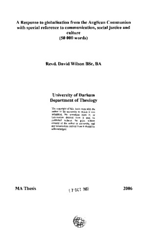 A response to globalisation from the anglican communion with special reference to communication, social justice and culture