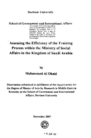 Assessing the efficiency of the training process within the ministry of social affairs in the Kingdom of Saudi Arabia