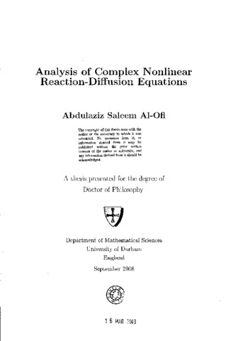 Analysis of complex nonlinear reaction-diffusion equations