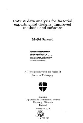 Factorial experimental designs are a large family of experimental designs. Robust statistics has been a subject of considerable research in recent decades. Therefore, robust analysis of factorial designs is applicable to many real problems. Seheult and Tukey (2001) suggested a method of robust analysis of variance for a full factorial design without replication. Their method is generalised for many other factorial designs without the restriction of one observation in each cell. Furthermore, a new algorithm to decompose data from a factorial design is introduced and programmed in the statistical computer package R. The whole procedure of robust data analysis is also programmed in R and it is intended to submit the library to the repository of R software, CRAN. In the procedure of robust data analysis, a cut-off value is needed to detect possible outliers. A set of optimum cut-off values for univariate data and some dimensions of two-way designs (complete and incomplete) has also been provided using an improved design of simulation study.