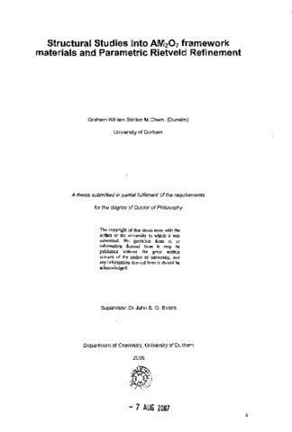 Structural studies into AM(_2)O(_7) framework materials and parametric Rietveld refinement