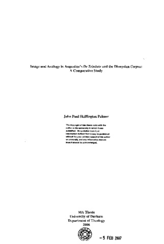 Image and analogy in Augustine's De Trinitate and the Dionysian Corpus: A comparative study