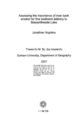 Assessing the importance of river bank erosion for fine sediment delivery to Bassenthwaite Lake