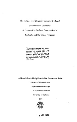 The role of eco-villages in community-based environmental education: a comparative study of communities in Sri Lanka and the United Kingdom