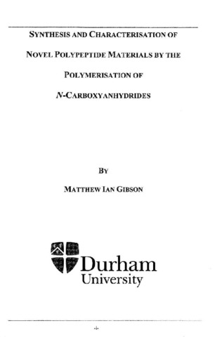 Synthesis and characterisation of novel polypeptide materials by the polymerisation of N-carboxyanhydrides