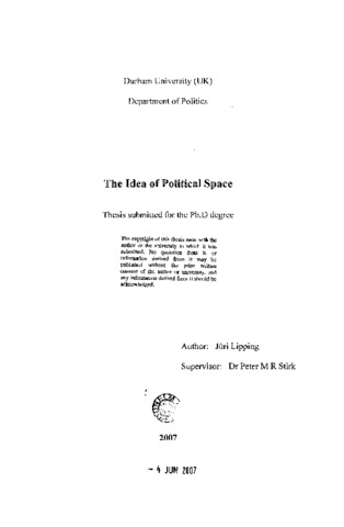 The present thesis attempts to address one of the fundamental questions of political philosophy -what is the political? - by theorising it in terms of a political space. It is assumed here that the political cannot first be determined in some substantial or normative way; the political, as distinguished from politics, constitutes the utmost ground of human living together. Political space refers precisely to this problematic field that determines human existence in its entirety. The introduction briefly sketches the initial conception of political space, understood as an inquiry into the conditions of possibility of political experience. The first part deals with Immanuel Kant's political thought, and tries to establish the concept of publicity (in its both affirmative and negative formulations) as a central political idea which integrates his doctrine of right (Rechtslehre) with his maxims of Enlightenment. After this initial outline, the main attention of the thesis focuses on two outstanding political thinkers of the last century: Carl Schmitt and Hannah Arendt. The second part argues, with respect to Schmitt, that his notorious friend-enemy distinction— which serves as the criterion of the political-presupposes the condition which has been left throughout in its German original: Öffentlichkeit (publicity, or public realm). It is argued, more generally, that the concept of the political has the structure of publicity. The subsequent inquiry into the concept of an Öffentlichkeit attempts to flesh out its nature, status, and political potential. The third part, dealing with Arendt's political thought, opens up anew the topic of an Öffentlichkeit by utilizing Arendtian conceptual tools in order to analyse and articulate further the exceptional and yet promising nature of this public realm. Finally, the conclusion recapitulates once again the basic motives and insights of this study, and briefly indicates certain parallel theoretical trends which testify to the importance and relevance of the subject matter which has been explored here.