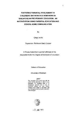 Fostering parental involvement in children’s mathematics homework in Singapore pre-primary education: an intervention using parental education and school-home communication