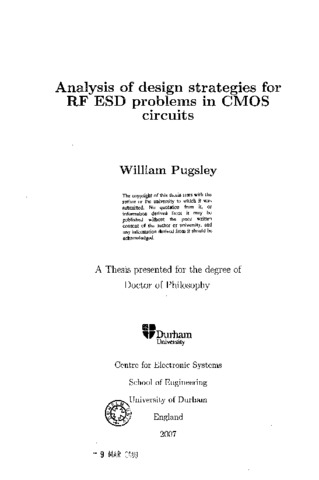 This thesis analyses the design strategies used to protect RF circuits that are implemented in CMOS technologies. It investigates, in detail, the physical mechanisms involved when a ggNMOS structure is exposed to an ESD event and undergoes snapback. The understanding gained is used to understand why the performance of the current RF ESD clamp is poor and suggestions are made as to how the performance of ggNMOS clamps can be improved beyond the current body of knowledge. The ultimate aim is to be able to design effective ESD protection clamps whilst minimising the effect the circuit has on RF I/O signals. A current ggNMOS based RF ESD I/O protection circuit is analysed in detail using a Transmission Line Pulse (TLP) tester. This is shown to be a very effective diagnostic tool by showing many characteristics of the ggNMOS during the triggering and conducting phase of the ESD event and demonstrate deficiencies in the clamp design. The use of a FIB enhances the analysis by allowing the isolation of individual components in the circuit and therefore their analysis using the TLP tester. SPICE simulations are used to provide further commentary on the debate surrounding the specification required of a TLP tester for there to be a good correlation between a TLP test and the industry standard Human Body Model (HBM) ESD test. Finite element simulations are used to probe deeper in to the mechanisms involved when a ggNMOS undergoes snapback especially with regard to the contribution parasitic components within the ggNMOS make to the snapback process. New ggNMOS clamps are proposed which after some modification are shown to work. Some of the finite element experiments are repeated in a 0.18μπ7. process CMOS test chip and a comparison is made between the two sets of results. In the concluding chapter understanding that has been gained from previous chapters is combined with the published body of knowledge to suggest and explain improvements in the design of a ggNMOS for RF and standard applications. These improvements will improve homogeneity of ggNMOS operation thus allowing the device size to be reduced and parasitic loading for a given ESD performance. These techniques can also be used to ensure that the ESD current does not take an unintended path through the chip.