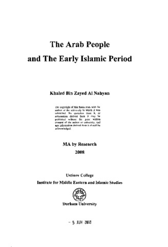 This MA thesis, entitled The Arab People and The Early Islamic Period, has been written in response to the post 9/11 interest in the Arab people and early Islam among Western academics. It gives a brief account of pre-Islamic Arabia, the beginnings of Islam and the philosophies and ideologies contained in the religion in an attempt to address the following two fundamental questions: 1. Are there any real grounds for the widely-held perception of the Arab people as a backward race, uncivilised, fragmented, unwilling to develop and making no contribution to the international community? Does their history support this perception? 2. Do the origins of Islam and the way it developed and expanded during its earliest days support current criticisms that Islam itself is an inherently violent religion? A study of the theories of the Arabs as a Semitic race, their geographical distribution and civilisations, the tribes of pre-Islamic Arabia and the ruling powers which influenced the region up to the 6(^th) century will be presented, before an examination of the origins of Islam, from the birth of the Prophet Muhammad in AD 570 to the death of the fourth Caliph in AD 661. It was during this period that Islam reached its zenith as a religion. During this time the essential, fundamental Islam can be surveyed - before imperial Islam was born, before it was adapted to suit differing needs and before it fragmented into sects. All original knowledge of Islam came from this period, what followed merely being derivatives of it. By examining the nature of the expansion of Islam - whether it was spread by military force or through trade and missionaries - we attempt to address questions concerning the Prophet’s confrontations with the enemies of Islam. Were he and his caliphs impoverished, power-seeking imperialists or did they just respond to challenges resulting from what they saw as a duty to make the Prophet's ideology known to people? The conclusion will argue that the Arab people, those of pre-Islamic Arabia as well as those of today, are direct descendents of the early inhabitants of the Arabian Peninsula, bound by common history and language with no ancestral discontinuity. Arabia is the birthplace of the earliest civilisations and has always been the home of many religions and ideologies. This region has always played an important role in other civilisations, in terms of imperial expansion, trade and the exchange of ideas. Many of its qualities were adopted and encompassed within those other civilisations. That Arabia became the birthplace of Islam seems natural, given that it has always been a region rich in ideas. Its emergence was also timely, as the other two monotheistic religions had been, coming at just the right moment for humanity. Islam embraces other faiths and religions, does not call for the enslavement of mind or body and does not encourage violent acts. The negative perceptions of Arabs as anti-establishment and violent and of Islam as a dangerous religion which threatens humanity is ill-founded. The reactions to Islam currently being witnessed mirrors events of 7(^th) century when the Byzantine and Sassanian superpowers sought to secure land and natural resources under the pretext of ideological differences. It is likely that this region will always be a theatre of conflict, due to its geographical location as a crossroads between continents. This study is divided into the following four chapters (excluding introduction and conclusions):Chapter 1 : Ancient Arabia and the World Leading to the 6(^th) Century Chapter 2: Prophet Muhammad and the Birth of Islam Chapter 3: The Rāshīdūn Period Chapter 4: Islam - The Ongoing Legacy. In surveying and summarising such a large span of time, from the early history of man up to the century, this work gives a broad overview rather than going into great detail on any of the topics covered. Whilst referring to other civilisations, such as ancient Egyptian, Greek and Persian where pertinent, this work focuses on the Arabian Peninsula and on the civilisations within that geographical region. In addition, there are few references from the time of the early Muslim expansion which reflect the opinions of opposing sides. References from the 9(^th) century onward are more widely available. Therefore, it was decided that presenting a history of the misrepresentation of Islam was beyond the scope of this MA. given that extensive research would need to be carried out in order to present an accurate, balanced account. This work is addressed to non-Arabic speaking readers. Regarding research, a decision was made to rely for sources on Western books and references easily available to examiners and readers. It was considered that the use of Arabic references could prove problematic, as understanding them without full knowledge of the Arabic language would be difficult. As there is no linguistic aspect to the scope of this thesis and given that it is addressed to non- Arabic speaking readers, a standardised simplified transliteration system has been used.