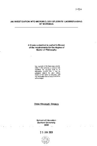 The research aimed to investigate students' understanding of microbes. Data on understanding of microbiology concepts were collected from biotechnology students during their formal 4-month microbiology course. Written tests and semi-structured interviews were used for data collection. For 2005 cohort, 120 students participated in semester 1 pretests while 112 students participated in semester 2 pretests. Seven and 8 students from semester 1 and 2 respectively took part in the post interviews. Classroom pretest was conducted two weeks after the microbiology course commenced while post intervention interviews (post interviews) were held a week before the semester ends. For 2007 cohort, 15 students were involved in the pre and post interviews. To probe students' thinking towards understanding the nature of microbes, interview questions were devised to answer 4 sub-research questions on student ideas on terminology, living characteristics, classification and occurrence of microbes. It hoped that results gathered will provide basic considerations for future teachings in microbiology to enhance student understanding on the concepts learnt during their early phase of learning life sciences. Students generally had the idea that microbes were harmless even they knew bacteria and virus could be pathogenic to humans. Such thinking was derived from their own personal experience of not falling ill despite being exposed to the microbial organisms and having microbes in their bodies. These microbes were thought to be ubiquitous and its occurrences mainly in the aerial environment and intestinal tract. The idea of a microbe as a small living organism requiring the microscope for viewing was prevalent amongst the students. Use of dimension of organisms was unreliable and prevented them from understanding the microbiology concepts, students had most difficulty in understanding the term 'microbe' and that would have contributed to their poor conceptual understanding of microbial classification. There was no improvement on students’ understanding of microbes for 2005 cohort. Understanding microbial classification and microbial growth improved slightly for 2007 cohort, but there were no students with sound understanding on growth as a living characteristic for microbes. For the respiration concept, students knew organisms needed air to live but failed to associate the purpose of nutrients for energy release necessary for microbial reproduction, growth and movement. In reproduction, students were able to describe binary fission but were unable to explain its association with chromosomes for inheritance purposes. Limited scientific knowledge caused poor understanding when learning about virus particularly in the biological processes for viral nutrition and reproduction. Their attempt to explain ideas with limited scientific knowledge gave rise to the utilisation of anthropomorphic expressions. Case study involving 6 students of the 2007 cohort showed that there was little development on ideas for concept of classification of microbes at the end of the microbiology course. The course did not help them gained an understanding that microbes were single celled organisms capable of functioning independently. Concepts of microbial growth and living characteristics of virus were most difficult to understand and learn, students were not aware of the microbes' ability to undergo cell division rapidly. Misconceptions were also uncovered in the investigation and until these were corrected, students would continue to experience difficulty when learning microbiology. The concept model for understanding the nature of microbes was proposed with the recommendation that students should first respond with ideas on living characteristics before proceeding to classify the organisms. With adequate scientific knowledge, the concept model could enhance a better appreciation and understanding on the complex nature of microbes.