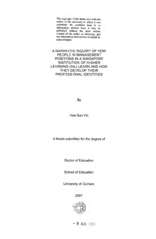 A narrative inquiry of how people in management positions in a Singapore institution of higher learning (IHL) learn and how they develop their professional identities