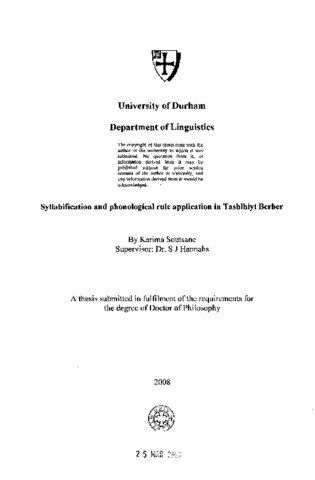 Tashlhiyt variety of Berber, spoken in the southern part of Morocco has drawn particular attention from phonologists for its admittance of complex consonant sequences and of vowelless phonological words. The way words should be analysed into syllable constituents in these cases is by no means trivial and depends on which segments are identified as nuclear. Dell & Elmedlaoui raised the question at the heart of the problem: 'are there languages in which any segment can occur as a syllable nucleus?' One such a language is the variety of Tashlhiyt Berber where even a voiceless stop may act as a syllable nucleus. The fact that any segment can form the nucleus of a syllable causes potential ambiguity in syllabification. The purpose of this thesis is to investigate the process of syllabification through various phonological and morphological processes which are affected by the results drawn from the syllabification algorithm in the language.