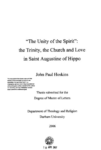 "The unity of the spirit": the trinity, the church and love in Saint Augustine of Hippo