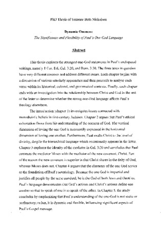 Dynamic oneness: The significance and flexibility of Paul’s one-God language