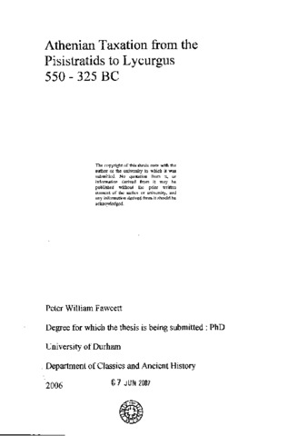 Athenian Taxation from the Pisistratids to Lycurgus 550 325 ВС