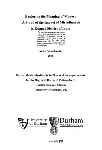 Exploring the meaning of money: A study of the impact of microfinance in Koppal district of India