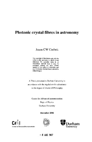 Photonic crystal fibres (PCF) are a new generation of optical fibre that guide light via a periodic air-silica, photonic crystal structure instead of the more traditional step change in refractive index associated with traditional fibre. Careful design of the photonic structure causes the fibres to behave in interesting new ways and one of main aims of this thesis is to begin the investigation of the uses of PCF's in astronomy. Step index and large mode area (LMA) PCF's are introduced in Chapters 2 and 3, respectively. Chapter 4 then deals with the instrumental simplifications associated with the use of LMA PCF'ร in fibre stellar interferometry showing that up to four step index fibres and associated optics can be replaced with a single LMA fibre. One of the key features of LMA fibres, for astronomy, is that, unlike the step index fibre, the mode field size is independent of wavelength and the fibre can therefore be fed with a pupil image via a field lens. Chapter 5 investigates this important new parameter space showing that contiguous sampling using single mode fibres is now possible for the first time. Further, unlike the direct feed to the LMA fibre, maximised coupling over very large wavebands is now possible using just a single fibre. Chapter 6 deals with another new fibre technology in astronomy: Multi-mode fibre (MMF) to single-mode array (SMA) transitions. These fibre systems break out the modes of the multi-mode fibre into an array of single-mode fibres upon which Bragg gratings can be etched. The SMA is then refused into an output MMF resulting in a multimode device but with single-mode line suppression. The number of modes transmitted is numerically equal to the number of fibres in the SMA and the performance of these devices is investigated on a model telescope showing that only a few tens of modes is required to efficiently transmit either the J or н bands. Finally, Chapter 7 details the experimental investigation of fibre modal noise in high dispersion spectroscopy. This is a photometric error on a resolution element due to fibre modes interfering with each other at very high spectral dispersion. Worryingly, the results show that no current theory exists that can predict the performance of a fibre based high R spectrometer.