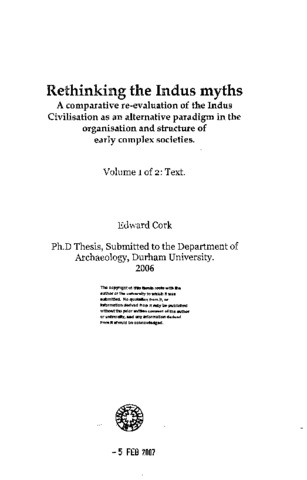 Rethinking the Indus myths A comparative re-evaluation of the Indus Civilisation as an alternative paradigm in the organisation and structure of early complex societies.