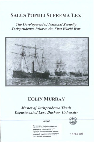 Salus populi suprema lex: The Development of national security jurisprudence prior to the first world war