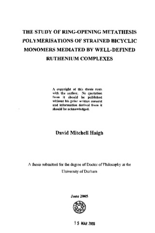 The study of ring-opening metathesis polymerisations of strained bicyclic monomers mediated by well-defined ruthenium complexes