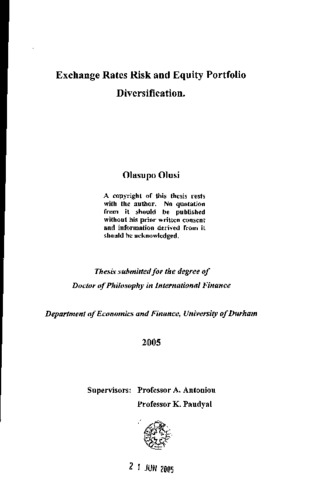 Exchange rates risk and equity portfolio diversification.