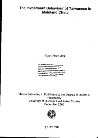 This thesis studies the patterns of Taiwanese investment behaviour in China. It also analyzes the implications on current economic, cultural and political trends and appraises the determinants influencing the Taiwanese direct investment (TDI) in China. As an active force in the economic development of the world, China is attractive to enterprises and producers from all over the world. Despite the complicated political environments between China and Taiwan, the Taiwanese have been investing in China for years. The increasing TDI in China is because of Taiwan's own depressed economic, political and social conditions, as well as FDI incentives offered by the Chinese government. Ethnical and language issues, as well as guanxi, also play important roles in this whole business process. Besides the above motives, this study also points out that an important motive for TDI in China is that Taiwanese industries are based on a 'subcontracting system', a unique international production/distribution network in East Asia, seen especially in Chinese regions. The motives of FDI from Taiwan into China are very different from the motives of FDI based on oligopolistic enterprises. TDI in China tends to involve an entire Taiwanese 'industrial migration', instead of the movement of firms due to the Taiwanese subcontracting system. This thesis aims to contribute to the study of FDI on Taiwanese firms which have mainland based ventures. This thesis attempts to provide an overall picture of T D I in China by exploring the investment motives, industries, and locations over a set time span. This thesis examines the determinants of locational choices o n T D I in China based on a conditional ๒git model. Similar to Hou and Zhang's study (2001), my empirical results Find that there is strong evidence of structural change on the determinants of locational choices of T D I in China over time, especially for infrastructure and labour costs. The factors behind this structural change include China's WTO entry and cultural links supported by the FDI policy. The results also show that the technology transfer from TDI into China has been significant for my sample period