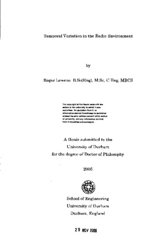Modem digital radio systems using high symbol rates are more susceptible to multipath interference than traditional systems. These systems need to adapt to the propagation environment in order to minimise transmission errors while minimising transmitted power and interference between systems. Mobile terminals will experience variations in the propagation environment as they move. Both fixed and mobile terminals will experience variations in the propagation environment as the environment changes with time. The extent and speed of environmental changes are necessary inputs to the design process for new radio systems. Previous reported measurements aimed at characterising the radio environment have been made over short durations of a few tens of milliseconds. In this thesis measurements over periods of up to 15 seconds are described and the results analysed to quantify longer term variations. The channel sounder developed at UMIST was used for the measurements and the environment was sampled over a number of paths in Manchester and Durham. The data from each 15 second measurement was split into two ensembles, one from the first 7.5 seconds and one from the remaining 7.5 seconds so that statistics from different times could be compared. The number of multipath components, the mean delay and the RMS delay spread were extracted for each 20 msec interval of each measurement. Cumulative Distribution Functions formed from the data from the two ensembles of each measurement showed differences between the ensembles. The results from Kolmogorov-Smirnof tests confirmed the differences for all three statistics. Attempts to model the variation of the statistics by fitting Normal and Weibull distributions to the data failed in most cases. PDFs of the RMS delay spread were multimodal suggesting that insufficient data was available. It has been concluded that there is temporal variation in the radio environment but that more measurement data will be needed for the variation to be characterised.