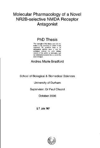 Molecular pharmacology of a Novel NR2B-selective NMDA Receptor Antagonist