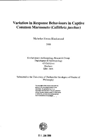 Variation in response behaviours in captive common marmosets (Callithrix jacchus)