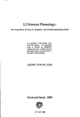 L2 Korean Phonology: the acquisition of stops by English-and Finnish-speaking adults