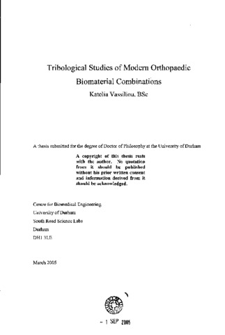 Tribological Studies of Modem orthopaedic biomaterial Combinations