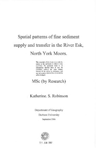 Spatial patterns of fine sediment supply and transfer in the River Esk, North York Moors.