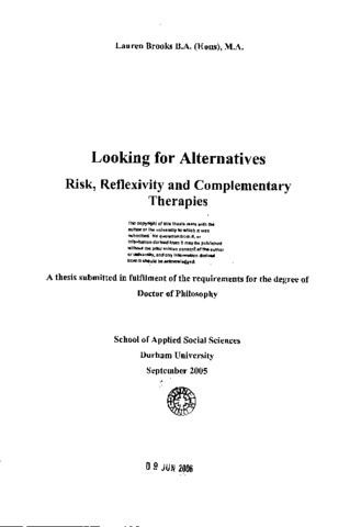 Looking for alternatives risk, reflexivity and complementary Therapies