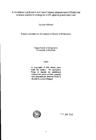 River channel planform change in upland gravel-bed rivers has consequences for riparian land use, river habitats and flood hazards. Channel planform is predominantly determined by the balance between sediment supply and prevailing discharge regime which is governed by climate and land use, and anthropogenic channel modification. While the nature of channel response to individual factors is in some cases well documented, the complex interaction of theses variables and their relative significance requires further evaluation. This study assesses the nature and extent of historic (1856-1991) channel planform change in the upland catchment of the River Wear, Northern England. A nested research strategy is adopted consisting of catchment wide and reach-scale evaluations of channel planform change using archival maps and aerial photographs. The cause of channel changes is considered with reference to hydrological records (1800-present), catchment land use (metal mining) and accounts of river channel modification (gravel extraction). Comparative historic (reach-scale) and contemporary (trunk channel) data is provided from the upper reaches of the River Tees in Teesdale, Northern England. In the mid nineteenth century a pulse of sedimentation migrated through the upper Wear catchment resulting in the development of eight major sedimentation zones with channel braiding separated by confined single thread reaches. Increased sedimentation was related to a combination of high magnitude floods during the nineteenth century and enhanced sediment supply from extensive metal mining in tributary streams. A decline in flood frequency and magnitude coupled with the cessation of metal mining during the early twentieth century, led to a reduction of sediment supply and lateral channel instability in the catchment. This promoted gravel bar stabilisation through vegetation colonisation, reducing average channel width by 56%. In the sedimentation zones, gravel bar extent declined by up to 87% and this was accompanied by a change to a single thread planform. Gravel extraction operations during the mid-twentieth century lead to local instability and delayed the decline in gravel bar area. In contrast the contemporary channel of the upper Tees is still characterised by localised channel division, around both active gravel bars and vegetated islands. Differences between the two catchments demonstrate the importance of catchment specific controls such as bedrock control and anthropogenic channel interference. A large flood on 30 July 2002 provided significant insight into the mechanism of channel planform change. Substantial increases in gravel bar extents were recorded together with localised changes in flow routing. While local controls such as gravel extraction are significant over decadal time scales, catchment scale controls, primarily changes in the frequency of large floods; determine channel planform over centennial timescales. In order to discriminate ― between local and catchment controls, catchment wide assessments are required.