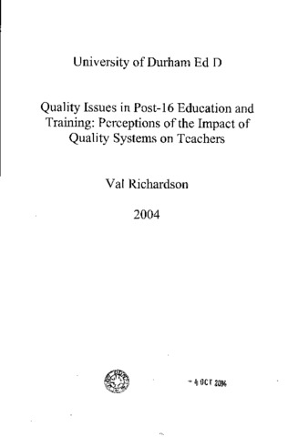 Quality issues in post-16 education and training: Perceptions of the impact of quality systems on teachers