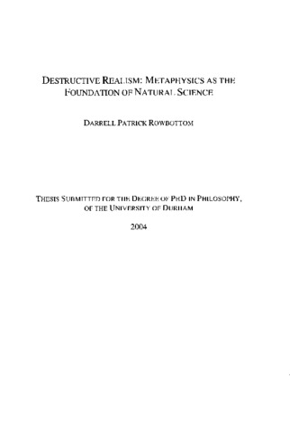 This thesis has two philosophical positions as its targets. The first is 'scientific realism' of the form defended by Boyd, (the early) Putnam, and most recently Psillos. The second is empiricism in the vein of Mill, Mach, Ayer, Carnap, and Van Fraassen. My objections to both have a rather Popperian flavour. For I argue that 'confirmation' is a misnomer, that so-called 'ampliative inferences' are heuristics at best, and that naturalism and subjectivism are regressive doctrines. At the heart of genuine realism, I argue, is a stance on the issues of perception and conception. In particular, I hold that to be a realist is to reject the notion that there are representations which have some sort of epistemic priority. And along related lines, I maintain that the closely aligned doctrine of physicalism cannot simply be presupposed. What this amounts to is that the search for some sort of 'solid foundation' for knowledge' is a futile enterprise. Such a foundation would be unimportant, even if there were to be one, and we ought to be free to critically examine any claim we like. So rather than sapere aude, I would have 'dare to err', and place an intersubjective emphasis on inquiry. And this goes for metaphysics, logic, and mathematics, as well as for natural science. Yet I also advocate the view that we ought to be optimistic about our ability to find the truth, ceteris paribus. And to this end, I argue that we should accept that our faculty of conception is sufficient to allow us to connect with the possibilities of being, whereas our faculty of sense is sufficient to allow us to connect with that which is actual; this, given considerable critical struggle on our parts, both individually and collectively. I urge that it is methodologically advisable to behave as if this is so, if we are not to асһieve only the self-paralysis of the Pyrrhonist. In a nutshell, destructive realism says that natural science progresses by ruling out possibilities, in particular by ruling out possible worlds as candidates for the actual world, but that this is a two-stage process, involving both an a priori (metaphysical) and an a posteriori (observational) component. The aim of natural science is to eliminate false theories. Its aspiration is truth.