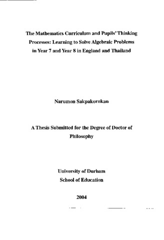 The mathematics curriculum and pupils' Thinking processes: Learning to solve algebraic problems in year 7 and year 8 in England and Thailand