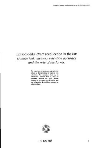 Episodic-like event recollection in the rat: E-maze task, memory retention accuracy and the role of the fornix.