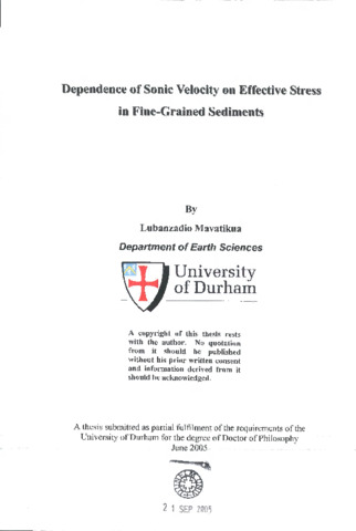 Dependence of sonic velocity on effective stress in fine-grained sediments