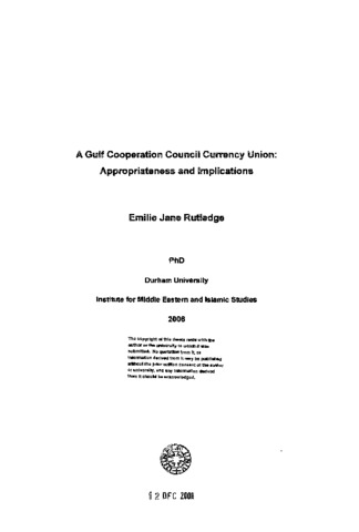 The six states, that together comprise the Gulf Cooperation Council (GCC), plan to adopt a single currency by 2010. If they are able to enact the necessary policy reforms and devolve some national sovereignty to supranational monetary and statistical institutions, capable of conducting a common monetary policy and managing the 'Gulf dinar", it will undoubtedly become the world’s second most significant currency union. It may also be seen as a viable reserve currency, particularly by neighbouring states, and could even be used to invoice oil sales. The aim of this thesis is two-fold Firstly, it assesses the appropriateness of a currency union for the GCC, against the optimal currency area criteria. It also examines the degree to which the GCC states have implemented the policy prerequisites for currency union, according to the experience of European Monetary Union. Secondly, it undertakes a qualitative cost - benefit analysis of currency union for the GCC as a whole and for each constituent state. This, in part, involves a review of post currency union monetary policy options and political-economy implications. The analysis employs both primary evidence collected through a GCC-wide business survey and from interviews with a panel of regional experts, and secondary evidence from published official sources. This research should add to the ongoing debate on the utility of currency unions in general and assess the validity of employing optimal currency area theory to a region which remains, to a high degree, dependent on oil. It also provides contextually based findings useful to regional policy makers. It concludes that a currency union will have significant benefits, but primarily indirect ones. Conventional benefits such as reduced transaction costs and eliminating exchange rate risks will be outweighed by benefits which will accrue from greater budgetary transparency, increased fiscal discipline and further economic diversification.