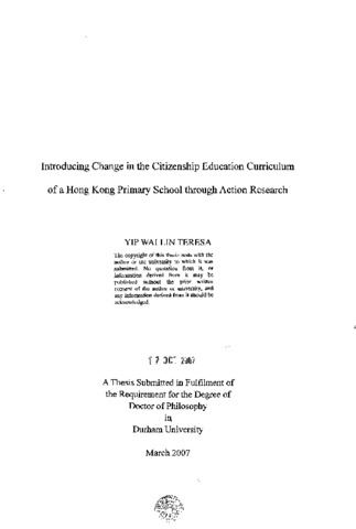 Introducing change in the citizenship education curriculum of a Hong Kong primary school through action research