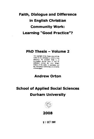 This thesis examines the impact of difference within English Christian community work practice, setting this work in the context of broader debates over the relationship between faith, politics, identity and practice. Several dimensions of difference are considered, including difference as diversity of practice, difference as contestation of practice, and difference as 'the other'. A multi-stage research design is employed to study these dimensions of difference further, based on analysing usage of the concept of 'good practice'. This concept is found to be continually defined, re-defined, applied into particular situations and contested through everyday interpretations, interactions and processes. The complexity of interests, relationships and structures at different levels are explored through consecutive case studies, highlighting both individual and organisational dynamics. An analysis of the data highlights several areas where current understandings and applications are creating counter-productive tendencies and dilemmas for all those involved. Questions of identity, purpose and learning are all found to be central to understanding and addressing these difficulties. Finally, a refined model of Christian community work is proposed that is based on informal education. This model begins to resolve these difficulties, thus helping to develop an improved understanding of this work to inform policy and practice.