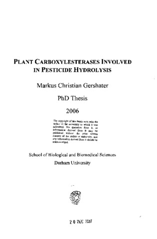 Many herbicides are applied in the form of carboxylic esters to increase their hydrophobicity and hence aid their passage through the waxy cuticle. Hydrolysis in planta of these pro-herbicide esters releases the active acid or alcohol and the rate of this cleavage can be a factor in determining herbicide selectivity. Protein extracts from 13 crop and weed species were assayed for carboxylesterase activity toward multiple xenobiotic and pesticide ester substrates, including 2,4-D-methyl, aryloxyphenoxypropionate esters and p-nitrophenyl esters. A diversity of activities was exhibited by the different species, with Arabidopsis thaliana extracts showing high hydrolytic activity toward several xenobiotic esters, particularly 2,4-D- methyl.The major 2,4-D-methyl hydrolysing enzyme in arabidopsis cell cultures was purified through three rounds of chromatography, then selectively labelled with a biotinylated fluorophosphonate probe (FP-biotin). Following streptavidin affinity purification, the labelled protein was identified by proteomics as the previously uncharacterised serine hydrolase AtCXE12. Recombinant AtCXE12 was subsequently confirmed to effectively hydrolyse 2,4-D-methyl.A T-DNA insertion knockout line that did not express AtCXE12 was identified and characterised. Protein from the knockout plants did not contain AtCXE12 and was found to have a reduced rate of 2,4-D-methyl hydrolysis compared to wild-type plant extracts. This translated into a higher tolerance of 2,4-D-methyl in young atcxel2 plants, due to a lower rate of bioactivation of the pro-herbicide.The fluorophosphonate-based chemical probe was subsequently used to identify other major serine hydrolases in arabidopsis. AtCXE12 and three previously uncharacterised hydrolases were identified, each belonging to a distinct enzyme family.