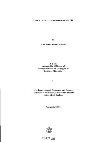 The vast majority of the world's M&A activities are represented by takeovers ofprivately held targets. Yet, this sector of the market for corporate control has received very little attention from academic researchers. This thesis thus sets out to provide a comparative analysis, both theoretically and empirically, of gains to bidders of private targets in relation to gains to bidders of public targets. When targets are privately held as opposed to publicly held or listed, there are reasons to believe that bidders gamer material gains even with full competition. By recognising the possibility that the decision of the owners of a private target to agree to a takeover (i) represents the exit strategy or (ii) is reflective of the passage of the firm through its life cycle, this thesis provides a new perspective on the wealth consequences of private-firm takeovers on bidder shareholders. The empirical analyses in this thesis reveal that not only bidder gains, but also bidder characteristics, distinctly differ between private-firm takeovers and takeovers of public targets or divested subsidiaries. This thesis also provides evidence on the largely unexplored determinants of the choice of payment methods in private-firm takeovers. In several important aspects, the findings contribute to the extant evidence on determinants of payment methods in takeovers of public targets. Considering the costs known to be associated with the decision to go public facing the owners of a privately held company, acquisition by a listed bidder is potentially a costeffective means by which the firm owners can exit or the firm can gain access to funds necessary for financing the unexploited investment opportunities. The common knowledge of the cost savings arising from choosing the takeover route implies that a portion of these savings is also available to be garnered by bidders of private targets. On the other hand, these savings are either trivial or absent when targets already have access to the capital market (i.e., public targets and divested subsidiaries). Given that the bidder is willing to pay the acquisition price that fully reflects its valuation of its target, there is hence no guarantee that the bidder earns positive gains when acquiring a public target whereas the exit costs savings provide a source of ex ante gains to the bidder if it opts for a private target. Around the bid announcement, bidders of private targets are found to earn positive gains. In contrast, when taking into account the event windows leading up to the announcement date, evidence emerges that public-firm bidders experience losses and bidders of divested subsidiaries overall fare no better than breaking-even around the bid announcement. Also at variance with the experience of public-firm takeovers, this thesis documents that announcement-period gains to bidders of private targets are positive irrespective of the payment method and that equity financing in private-firm takeovers leads to larger bidder gains. This positive announcement-period effect of equity financing appears attributable to the positive information about the bidder's prospects rather than the expected performance monitoring by the target owners. Given the considerably small size and closely held ownership of private targets, which are in contrast with public targets and divested subsidiaries, bidders of private targets are unlikely to be motivated by the empire-building objectives. Instead, the characteristics of private targets imply that their bidders maximise the realisation of expected synergies rather than personal utility for the bidder managers. The closely held ownership and small size of private targets also imply that they are much easier to integratethan public targets or divested subsidiaries. The analysis of long-term bidder abnormalreturn reveals that while private-firm bidders breakeven during the post-acquisition period,11 there is evidence that public-finn bidders, and particularly bidders of divested subsidiaries, experience losses. The difference in ownership structure between private targets and public targets also leads to the difference in the change in ownership concentration in the bidders. While equity financing leads to a ceteris paribus increase in ownership concentration in privatefirm bidders, the opposite follows for public-firm bidders. The owners of a private target in an equity offer, as rational large shareholders, have economic incentives to monitor the performance of the bidder managers whereas atomistic shareholders of public targets in an equity offer do not. During the post-acquisition period, equity financing overall leads to a normal rate of return for private-firm bidders. This finding is consistent with the notion of rational pricing that the amount of compensation for the monitoring services by the target owners in equity offers reflects the incremental benefits of the services accruing to other bidder shareholders. In contrast, equity financing results in long-term losses for publicfirm bidders. Considering the differences in the wealth effects on bidder shareholders between private-firm takeovers and public-firm takeovers, this thesis also empirically explores two additional largely neglected issues. First, why do some bidders choose private targets and some others choose public targets or divested subsidiaries? Secondly, why equity financing rather than cash financing is used in some takeovers of private targets and not others (and vice versa)? In the main, the results of investigating the potential factors influencing bidders' target choice decision reveal the importance of managerial ism in the bidder and the pressure to improve growth prospects facing the bidder. However, hubris arising from past performance does not appear to affect bidders' target choice decision. Lll The analysis of the potential determinants of payment methods in private-firm takeovers shows that the level of informational asymmetry in private-firm t