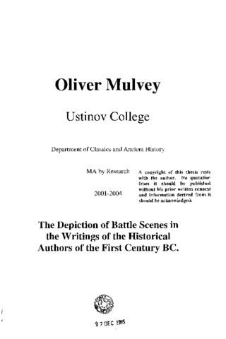 The depiction of battle scenes in the writings of the historical authors of the first century BC.